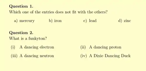 The Style parameter sets the style of counters and text, the Style* parameter sets the style of counters, and the Style** parameter sets the style of text. The parameter Numbers determines the way that the numbers are displayed and the possible values are r or R (for lower and upper case Roman numerals), l or L (for lower and upper case letters), a (for Arabic numbers, the default), and z (for Zapf's Dingbats).