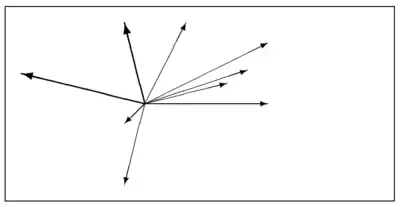 For arrows, the components of the direction vector are even more narrowly restricted than for line segments, namely to the integers (−4, −3, ... , 3, 4). Components also have to be coprime (no common divisor except 1). Notice the effect of the \thicklines