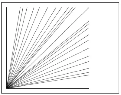 The components of the direction vector are restricted to the integers (−6, −5, ... , 5, 6) and they have to be coprime (no common divisor except 1). The figure below illustrates all 25 possible slope values in the first quadrant. The length is relative to \unitlength