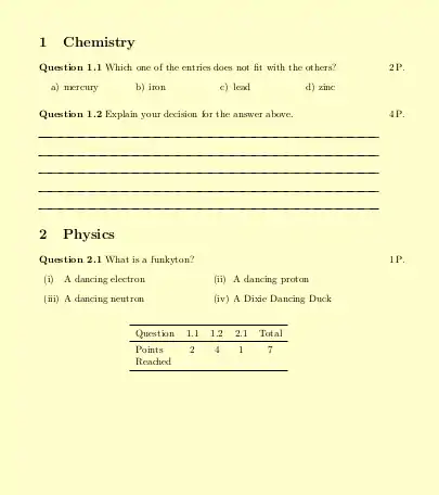 is an alternative to the exam class. It can be used to create exam papers, text books including solutions etc. Many options are available to style the output. Following a demonstrative example.