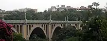 The Duke Ellington Bridge and the Taft Bridge are two bridges in Washington D.C. which both cross over the Rock Creek gorge. In 1985, the Ellington Bridge accounted for four suicides each year, which was half of all jumping suicides in the city. The Taft Bridge averaged fewer than two suicides per year.[2] [3] This disparity was quite unexpected, considering two important similarities between the two bridges. First, both bridges stand at approximately 125 feet tall, essentially guaranteeing death as a result of jumping. This precludes the hypothesis that one bridge was more desirable due to an increased chance of death. Second, the bridges are located only several hundred yards from each other. Thus, neither was in a region of a higher general jumping suicide rate than the other.
