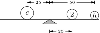 The first example is from Physics. Suppose that we are given three objects, one with a mass known to be 2 kg, and are asked to find the unknown masses. Suppose further that experimentation with a meter stick produces these two balances.