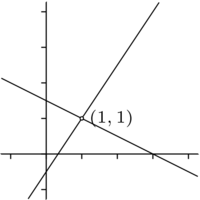 By eye we get the solution and . But a computer has more trouble. A computer that represents real numbers to eight significant places (as is common, usually called single precision) will represent the second equation internally as , losing the digits in the ninth place. Instead of reporting the correct solution, this computer will report something that is not even close— this computer thinks that the system is singular because the two equations are represented internally as equal.