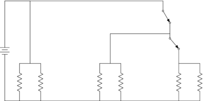 the electric current through the battery is amperes. Thus, the parallel portion is equivalent to a single resistor of ohms.