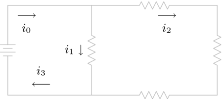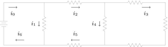(The last three equations come from the circuit involving --, the circuit involving ----, and the circuit with ----.) Octave gives , , , , , , .