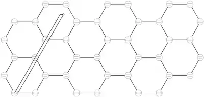 - Here is the point located in the lattice. In the picture on the left, superimposed on the unit cell are the two basis vectors and , and a box showing the offset of . The picture on the right shows where that appears inside of the crystal lattice, taking as the origin the lower left corner of the hexagon in the lower left.
