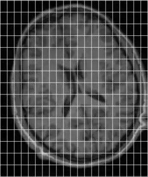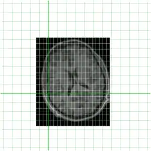 In order to get a better understanding of how mni_autoreg or indeed linear registration works, here is a simple example. Suppose we have an image of an individual and wish to align this with a model. These two images are shown below, the individuals image on the left (indiv.mnc) and model (model.mnc) on the right. Note that both of these files have different sampling and voxel sizes as illustrated by the white lines