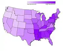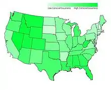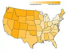 According to myPersonality.org, different states within the North America demonstrate various levels of extroversion. Studies show that the southern states tend to display the most extroverted personality traits within the continental United States. By contrast, the Western half of the US is far more introverted than the East Coast (with the exception of Maine and Vermont).