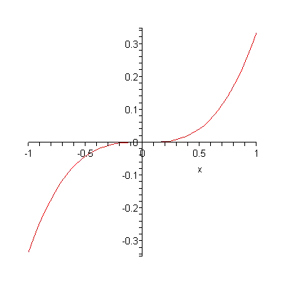 >plot(x^2, x=0..1); #Image on the left >plot(1/3*x^3, x=-1..1); #Image on the right