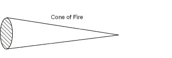 - Cone of fire - volume of space described by the outermost projectiles in a burst of fire.