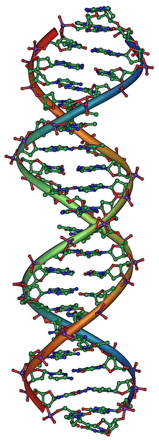 The DNA molecule arranges itself in the famous double helix, first postulated by Watson and Crick in 1953: