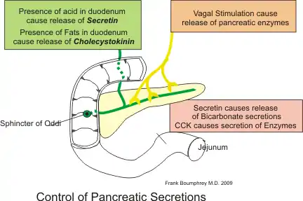 The following diagram summarizes the factors controlling pancreatic secretions.