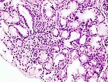 - Excess acid secretion which can over whelm the defences. This can occour particularly in Zollinger-Ellison syndrome, caused by benign gastrin secreting tumors which may develop in the stomach or duodenum.