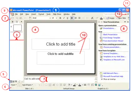 - Title Bar - Displays the name of the application followed by the title of the presentation