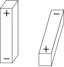 Similarly to the derivation of a charge-dipole interaction, the derivation for dipole-dipole interactions begins by defining the distance between the centre of the two dipoles as r, and the length of each dipole as l. Using a method similar to the derivation of a charge-dipole interaction, trigonometry can be used to determine the distance of each vector corresponding to an interaction: , , , and .
