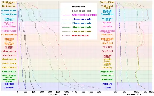 The first three factors are obvious: valuable properties have a better ratio of expenditure to return. The fourth factor is more interesting because it determines how often players will land on each property and thus pay rent to its owner. In recent years, computer simulations have allowed a probabilistic analysis of the frequency with which each square is visited during the average game.