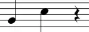 The quarter note and rest are one-quarter the length of the whole note and one half the length of a half note: