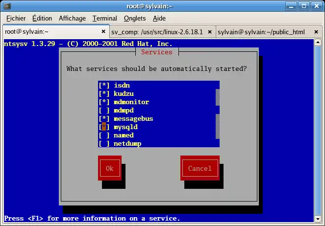 To control whether to launch MySQL on startup, you can use the ntsysv