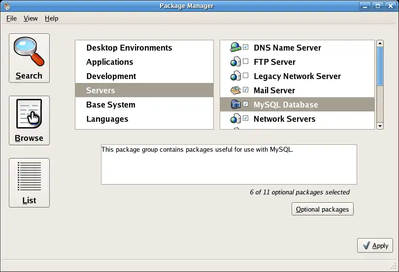 Using pirut (Applications->Add/Remove Software), you can also server MySQL Database in the Servers category: