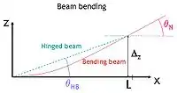 between the tip deflection distance and tip deflection angle. This is a factor 3/2 bigger than the result we would expect if the beam was stiff and hinged at the base, showing us that we get a bigger deflection of the laser beam when the beam is bending than when its straight.