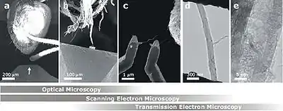 Optical microscopes can often reach a resolution of about nm. For nanoscale resolution this is unfortunately not sufficient to distinguish for instance a single nanotube from two adhering to each other, since they have diameters of less than 100 nm.