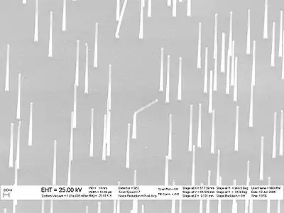 Nanowire growth is catalyzed by various nanoparticles, which are deposited on the substrate surface, typically gold nanoparticles with a diameter of 20-100nm.