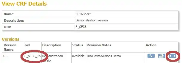 In the screen that opens you see the CRF-details, including the OID of this version of the CRF: "F_SF36_15". Again: write this down, because this is your second ingredient.