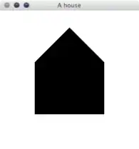 void display() { glClear(GL_COLOR_BUFFER_BIT | GL_DEPTH_BUFFER_BIT); glColor3f(0.0f, 0.0f, 0.0f); // sets color to black. glBegin(GL_TRIANGLE_STRIP); // draw in triangle strips glVertex2f(0.0f, 0.75f); // top of the roof glVertex2f(-0.5f, 0.25f); // left corner of the roof glVertex2f(0.5f, 0.25f); // right corner of the roof glVertex2f(-0.5f, -0.5f); // bottom left corner of the house glVertex2f(0.5f, -0.5f); //bottom right corner of the house glEnd(); glutSwapBuffers(); }