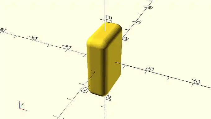 sides_only_rounded_box.scad use <MCAD/boxes.scad> $fa=1; $fs=0.4; roundedBox(size=[10,20,30],radius=3,sidesonly=true); |