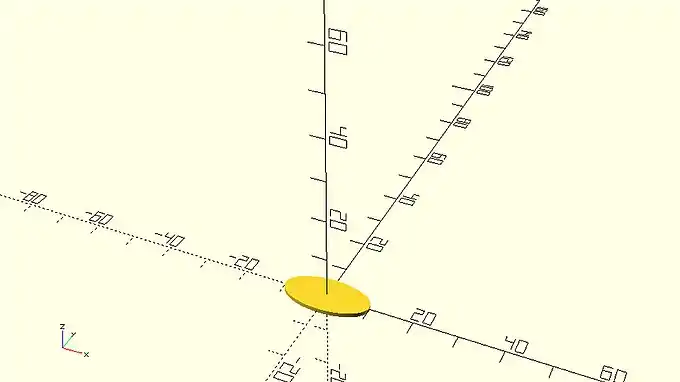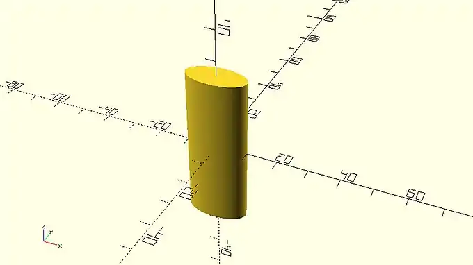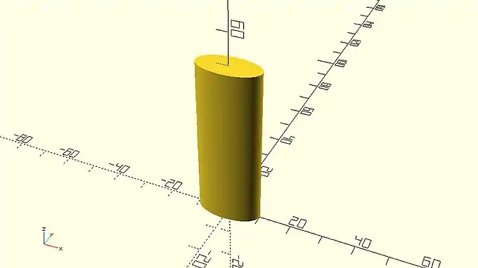 centered_extrusion.scad … linear_extrude(height=50,center=true) scale([2,1,1]) circle(d=10); … |