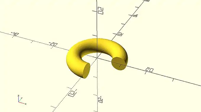The rotate_extrude command has one input parameter named angle. The angle parameter is used to define how many degrees the 2D profile will be rotated around the Y axis. In this case the angle parameter is set equal to 360 degrees which corresponds to a full circle.