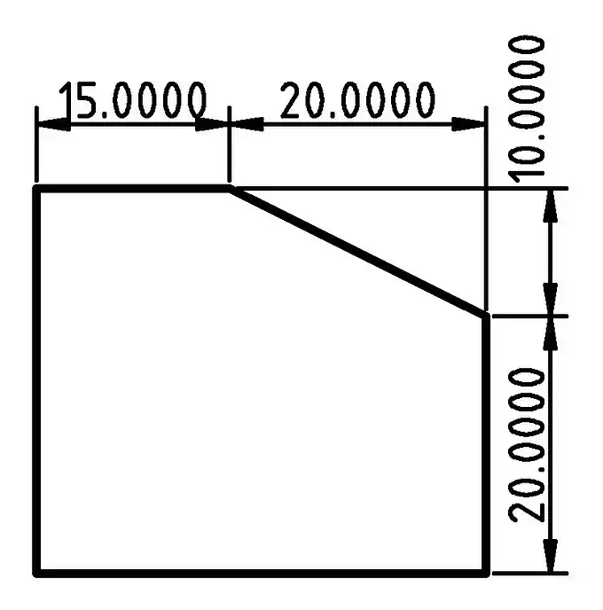 One way to go about designing this part without using the polygon primitive would be to start from a square that corresponds to the outer dimensions of this part and then subtract a properly rotated and translated square from its top right corner. Calculating the proper angle of rotation and amount of translation would be a time-consuming task. Additionally, following this strategy for more complex object wouldn’t be possible. Instead, you can create this object using the polygon primitive in the following way.