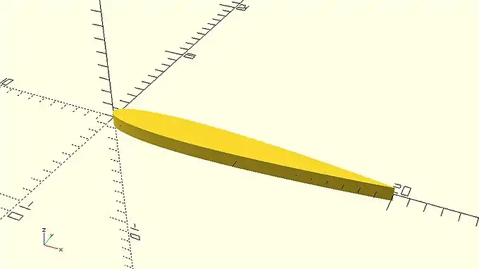 scaled_airfoil_polygon.scad … chord = 20; points = naca_coordinates(t=0.12,n=300); scale([chord,chord,1]) polygon(points); … |
