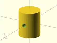 module ring(r1, r2, h) { difference() { cylinder(r = r1, h = h); translate([ 0, 0, -1 ]) cylinder(r = r2, h = h+2); } } ring(5, 4, 10);