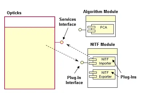 As shown in the diagram on the right, the plug-in architecture is made up of the Opticks main application, modules, and plug-ins. A module packages one or more plug-ins in a DLL or shared object and defines the interface through which Opticks will load a plug-in. A module is also a convenient place to put code that is shared by more than one plug-in. For example, the diagram shows the NITF importer and exporter in the same module since they share code to read and write the NITF file format.