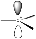 EXAMPLE: In a 1st order nucleophilic substitution (SN1 reaction) the chirality of a carbon is "flipped" from S to R configuration (or vice versa) 50% of the time, leading to a racemic product (assuming it is chiral). This is because the chiral carbon becomes achiral in the carbocation intermediate, due to the sp2 carbon center that is flat and thus subject to nucleophilic attack from either the top or the bottom. If there were no intermediate, simple retention or inversion would be expected 100% of the time. This type of racemization during an SN1 reaction may be seen as evidence of a carbocation intermediate.