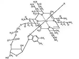 The only example of a biological molecule containing direct carbon-metal bonds is cobalamin, as known as vitamin B12