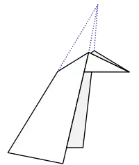 The swivel fold is difficult to describe as the term is loosely defined and there are so many different versions that could be called "swivel folds". However, generally swivel folds consists of swivelling a flap of paper at a certain point or vertex in order that the raised edge of the flap will lie on the edge of the flap that doesn't move: