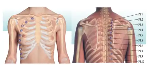 PR2-PR10 | Superior surface of respective rib angles | Seated, F SARA |