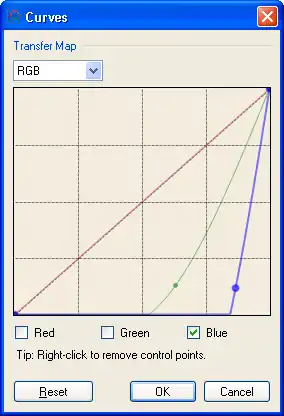 Choose 'RGB' under 'Transfer map', then uncheck the 'Red' and 'Green' checkboxes so you're only modifying the blue channel, add a control point as shown below. Do the same for the green channel so you have the curves shown below.