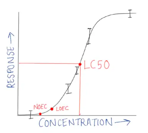 Lethal Concentration 50 (LC50): Concentration at which 50% of the organisms in a population are killed following chemical exposure.