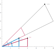 The process by which we extended the natural numbers to the integers and then the rational numbers was one of abstraction and generalization: If a solution to an equation existed and obeyed the rules we had already learned about numbers, it had to have certain properties. Once we knew all the properties it would have to have, we could build a new set of numbers in which it did exist. We can carry this process even further. Some equations cannot be solved by rational numbers, for example . In introducing irrational numbers into our system, let's go a bit further than we strictly have to by allowing numbers with any decimal expansion as part of our set, which we'll call the real numbers. The real numbers have some interesting properties: every positive real number has a real root (of every order) and a real logarithm, and they are complete in the sense that for every set of real numbers, you can find exactly one number that's greater than every other number in the set and smaller than every other number with this property. You can't do this for all sets of rational numbers -- for example, it fails for the set 3, 3.1, 3.14, 3.141, 3.1415, ..., which contains infinitely many numbers that approach . One of their most interesting properties is that you can assign exactly one real number to every point on a line and cover the entire line. Somehow along the way in this process of abstraction and generalization, numbers have turned from something we use only for counting to something we can use to describe shapes, and this is the concept geometric algebra is based on.