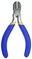 The first, and most important tool you will need is some sort of soldering iron or soldering gun, which you can purchase at your local electronics store. They come in many different wattages and designs, and may be powered from the AC mains, a rechargeable battery, or even butane gas. You will use your iron to melt the solder in order to make the connections in your circuit. For serious work with sensitive semiconductor components, look for a pencil-style iron powered through a low-voltage transformer connected to the AC mains, with a rating of about 40 watts, having an assortment of interchangeable soldering tips and some type of automatic temperature control. You should also have a moist cellulose sponge to wipe dross from the iron tip while working. Better soldering stations usually include a tray for a sponge in their base.