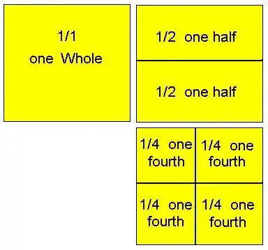 So just imagine the figure to the right is one whole 4 story "chocobar" (i will remind you that one chocobar that has 4 stories still is one chcobar) You will see that each story represents a fraction. 1/4 means its needs 4 pieces to make a whole. | 0000 __________________ 000000/ | OOOO Mr. Anaconda | "CHOBARS ARE YUMMY!" \ _______ | "I hope I eat a lot | / \ | of them!" | / \ | | / \ | | / \ / \-/ \-/ |