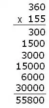 The area model can be used to show the distributive property at an even more complex level. Consider the problem 155x360: