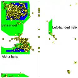 - ↑ RAMACHANDRAN GN, RAMAKRISHNAN C, SASISEKHARAN V (July 1963). "Stereochemistry of polypeptide chain configurations". J. Mol. Biol. 7: 95–9
