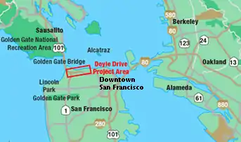 - ↑ San Francisco County Transportation Authority. Presidio Parkway (Doyle Drive Replacement)/Background http://www.sfcta.org/presidio-parkway-doyle-drive-replacement-background.