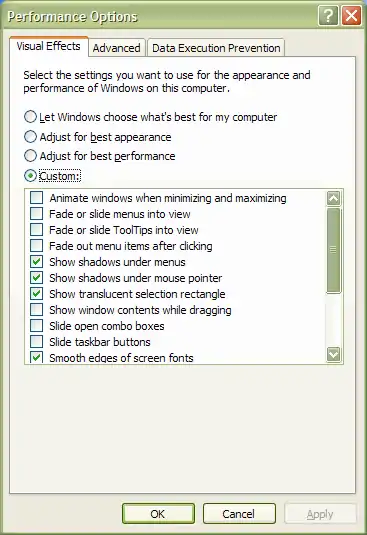 Even with the KVM kernel module, running Windows under QEMU can be aggravatingly slow. While straight code runs quickly, system calls that need to be emulated (especially to the video card) can make things seem very slow and sluggish. This can be easily improved by turning off some of the GUI bling that Windows XP introduced. Open the System Properties applet from the Control Panel, select the Advanced tab, and open the Performance settings. See the image at right for some examples of settings that you can turn off to improve performance, or just turn them all off by selecting "Adjust for best performance". NB: if you connect to your Windows XP image using RDP (remote desktop), these settings will be picked for you by default anyway; RDP is probably the fastest way to get a Windows XP desktop visible in other operating systems, but requires some networking configuration (see below).