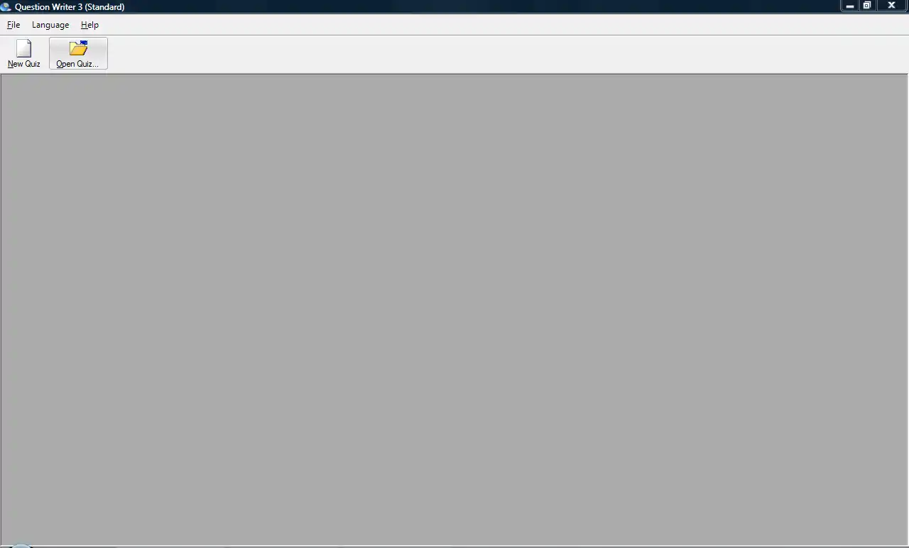 Most of the screen appears blank but at the top there is the title bar (which tells you that you have opened Question Writer and which version); a menu bar with 3 menu options and below that a tool bar with 2 buttons.