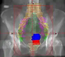 Example of an AP radiation therapy treatment field for Stage IB2+ Cervix used at Tufts/Brown residency program. Actual patient contours should guide field design.